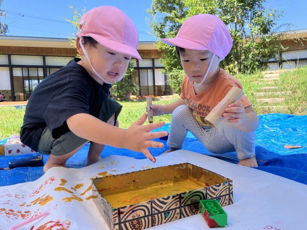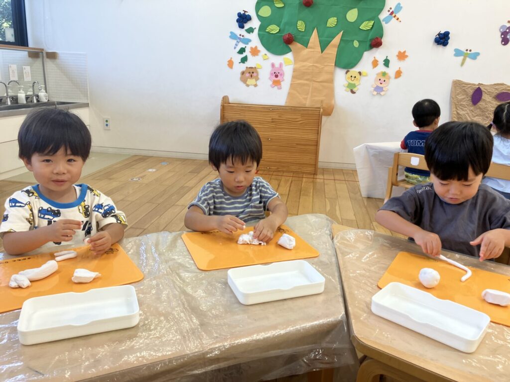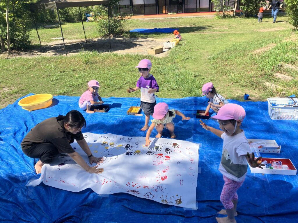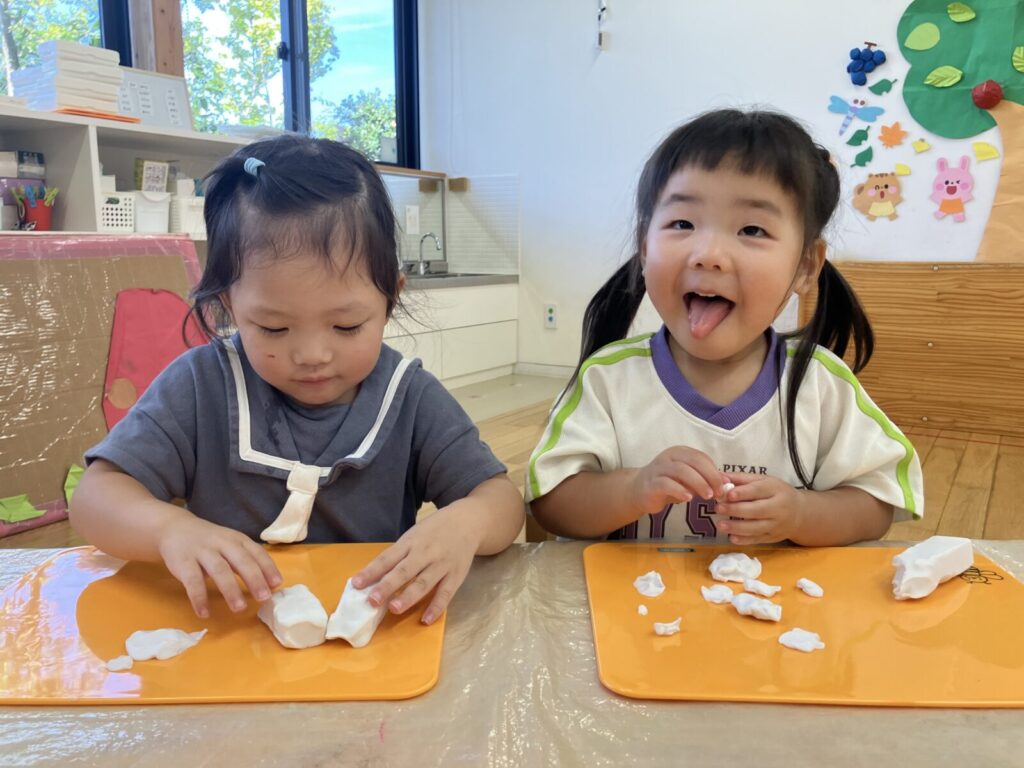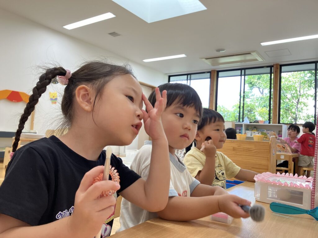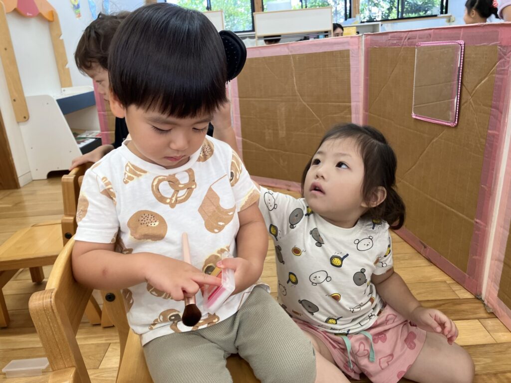暑かった園庭も少しずつ涼しくなってきました!お砂場遊びが大好きな子どもたちは、大きなケーキを作ってお友だちと一緒に食べたり、段ボールのお家でかくれんぼしたり、お外で元気いっぱいに遊んでいます🌞お部屋ではお化粧ごっこが大ブーム💗「ここに座ってください!」「何色にしますかー?」とお話ししながら優しくブラシでポンポンして可愛く変身していました✨絵の具を使ってみんなでペッタン、ペッタン、スタンプ遊び、楽しかったね♪9月のかわいいピッコロさんです。ご覧ください!