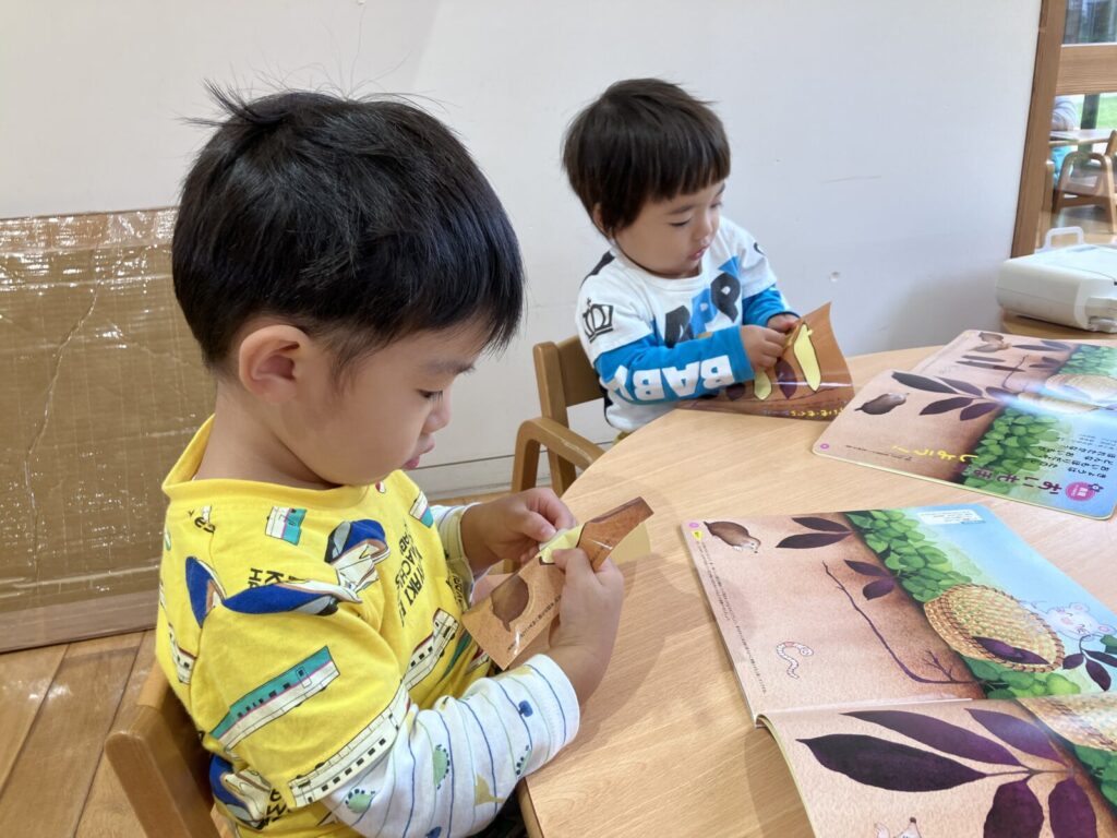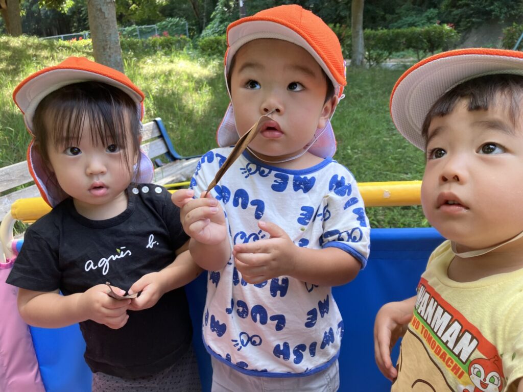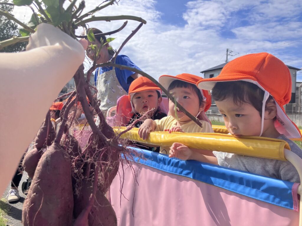 ヒュウ~っと吹く風が肌寒くなり、季節は秋ですね🍂畑にはマーチさんが育てたサツマイモ🍠そして、園庭にはどんぐりがた~くさん!「どんぐりころころどんぶりこ♪」口ずさみながら楽しそうに探索♪お散歩バッグにどんぐりを集めたり、お友だちと並んで、よ~いどんをしたり、秋の自然の中で毎日元気いっぱい遊んでいるピアノさんです🍁