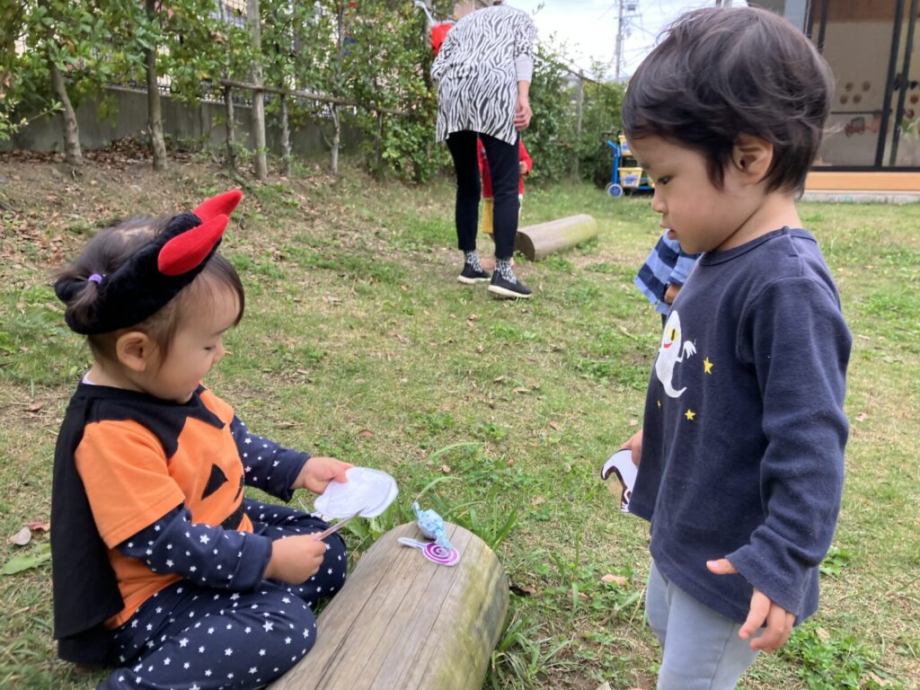 31日はハッピーハロウィン🎃かわいいプチおしゃれのご用意ありがとうございました💗お楽しみのおやつを食べたり、園庭にかくれんぼしているオバケちゃんを探しに行ったり…👻特別な日って嬉しいね😊かわいい子どもたちの姿、ご覧ください!
