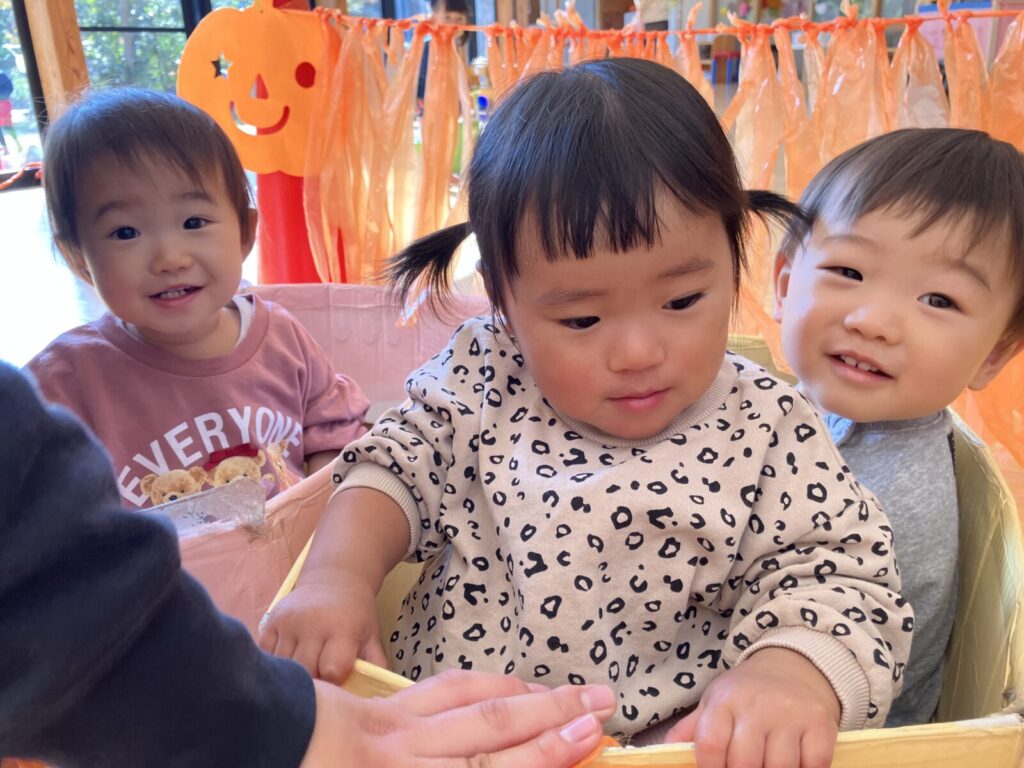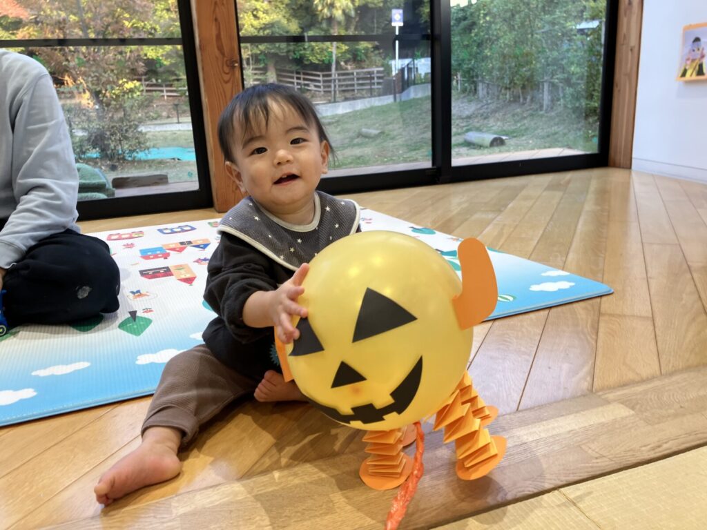 ハロウィン当日はお休みのお友だちも多かったので、みんな揃ってリベンジハロウィン👻スズランテープでできたトンネルをくぐったり、おばけの風船とお散歩したりとみんなで楽しく一緒に遊びました♪今月のかわいいハープさんの姿どうぞご覧ください!