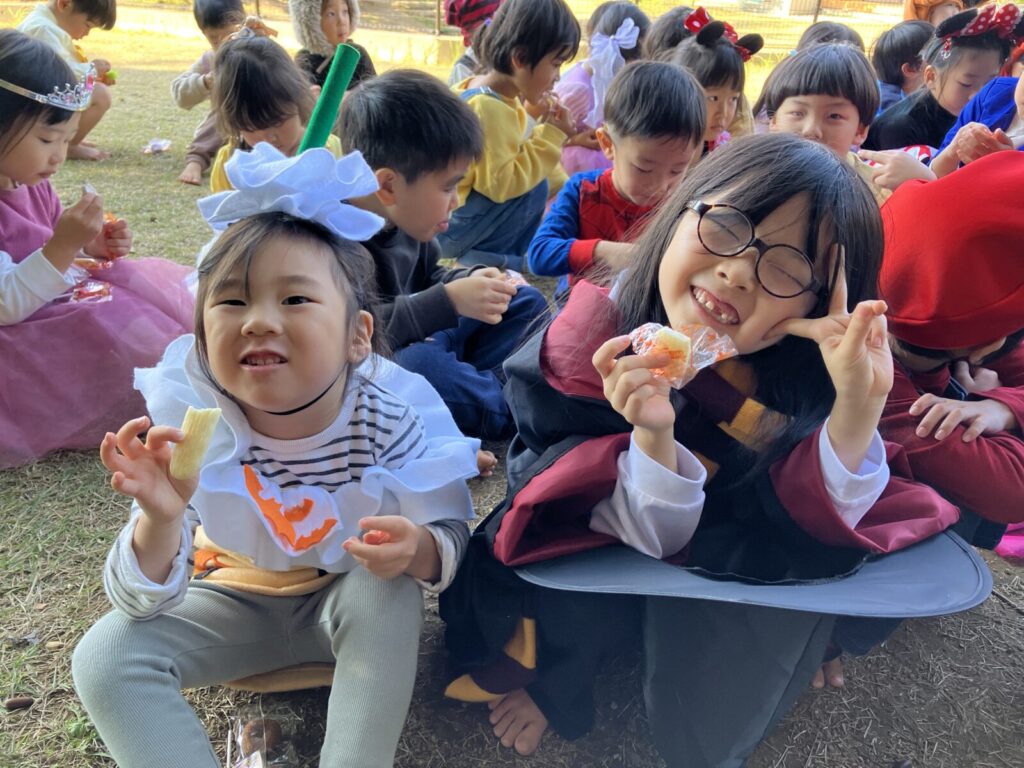 ハロウィン当日はお休みのお友だちが多かったので、11月にリベンジハロウィンをしました🎃異年齢で遊んだり、魔女さんからお菓子をもらったりして、とっても楽しいハロウィンになったね!