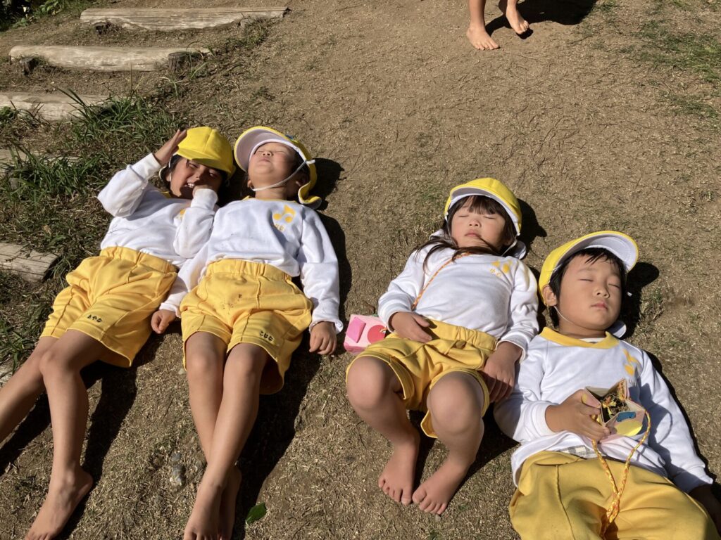 お外ではお友だちと一緒に身体を動かして遊んだり、ステージに寝転がってのんびり過ごしたりしていた子どもたちでした😊