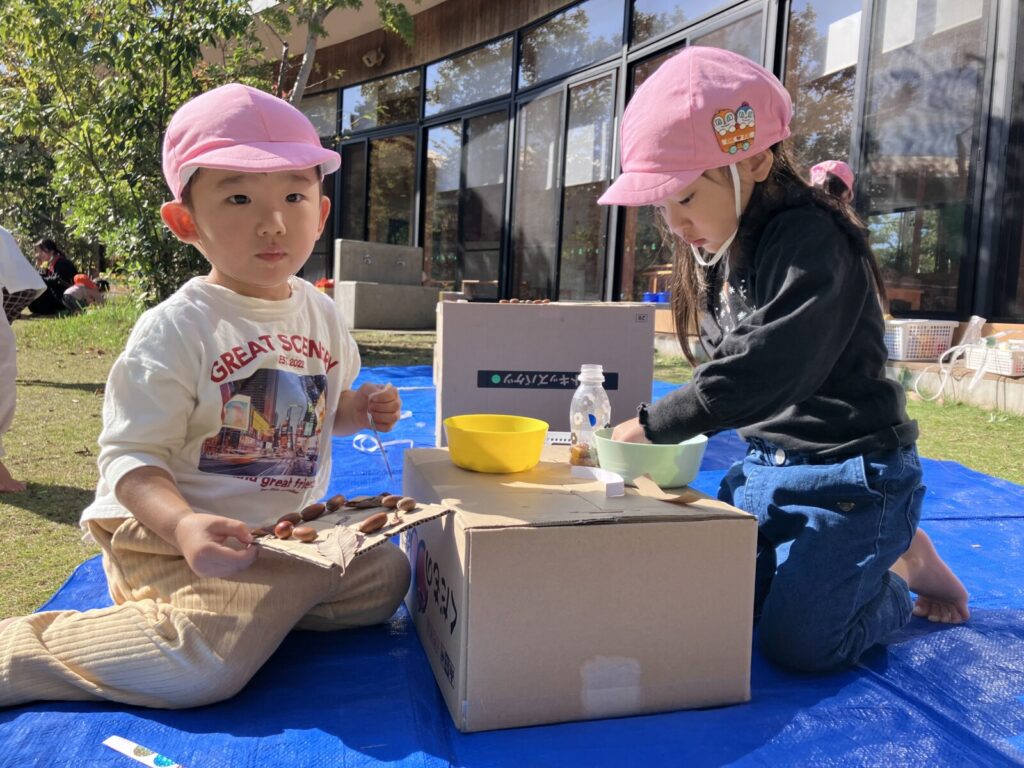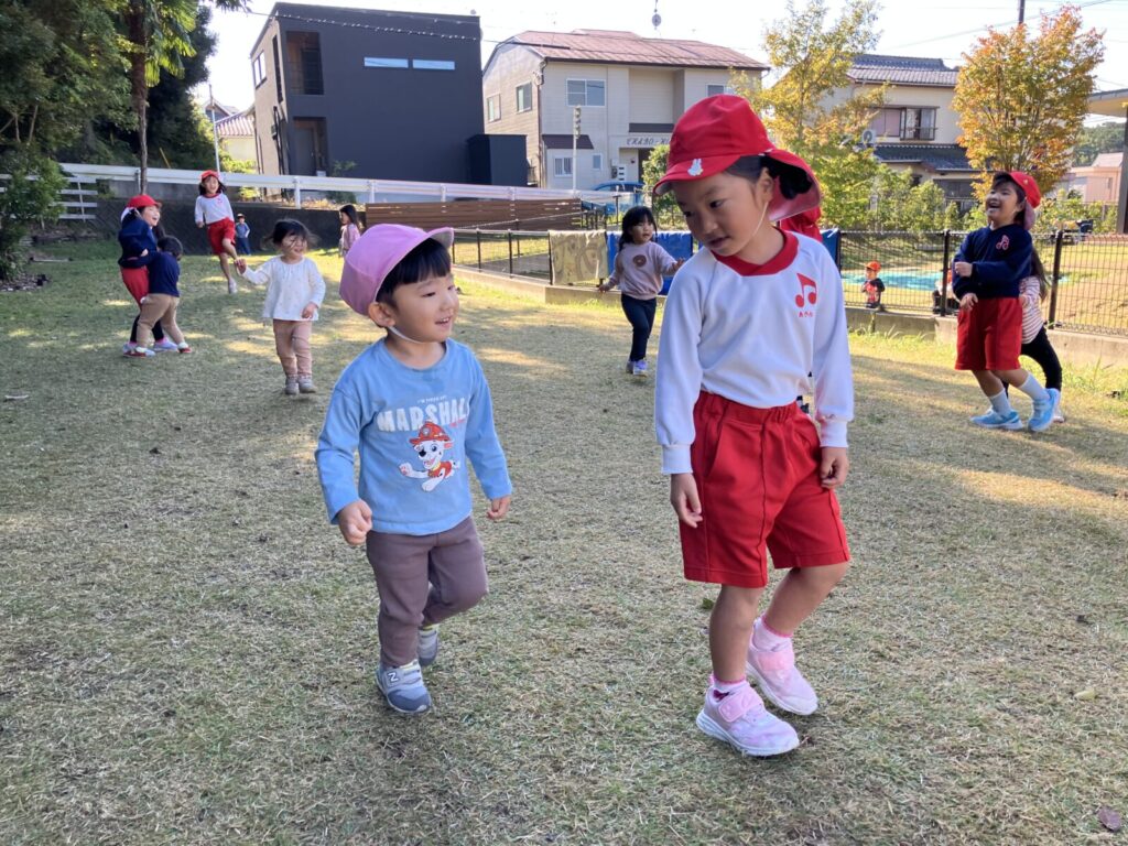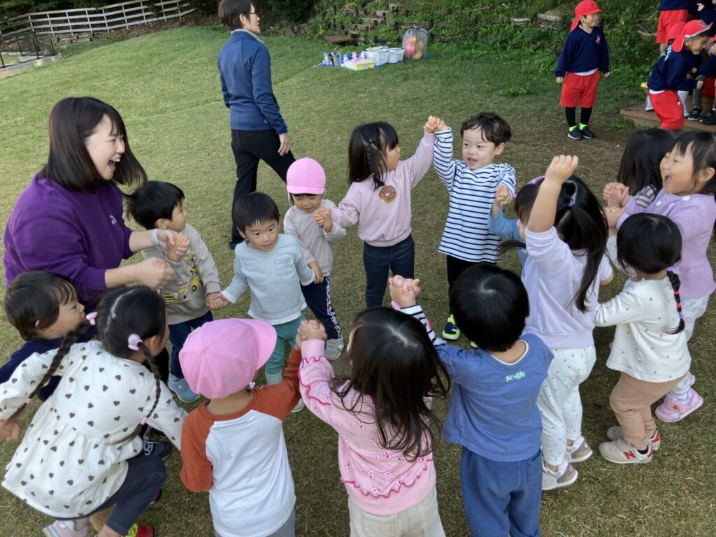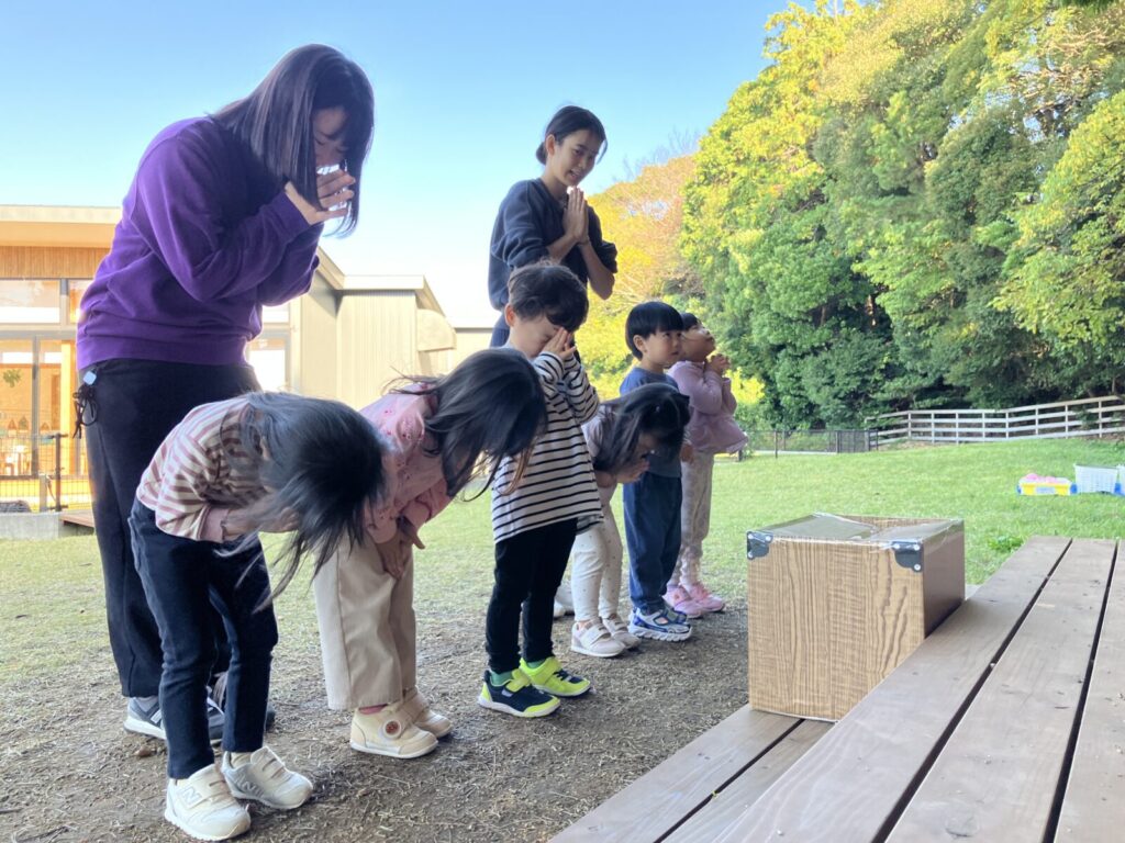 11月はピッコロさんが大きくなったことをみんなでお祝いする七五三がありました!お兄さんお姉さんから手作りの輪飾りやお花をもらったり、音の森神社に手を合わせてお参りをしたりしました⛩「七五三まだ?」ととっても楽しみにしていた子どもたちです💗お外も少しずつ寒くなってきましたが、秋の自然を感じながら大好きなお友だちとた〜くさん遊びました!