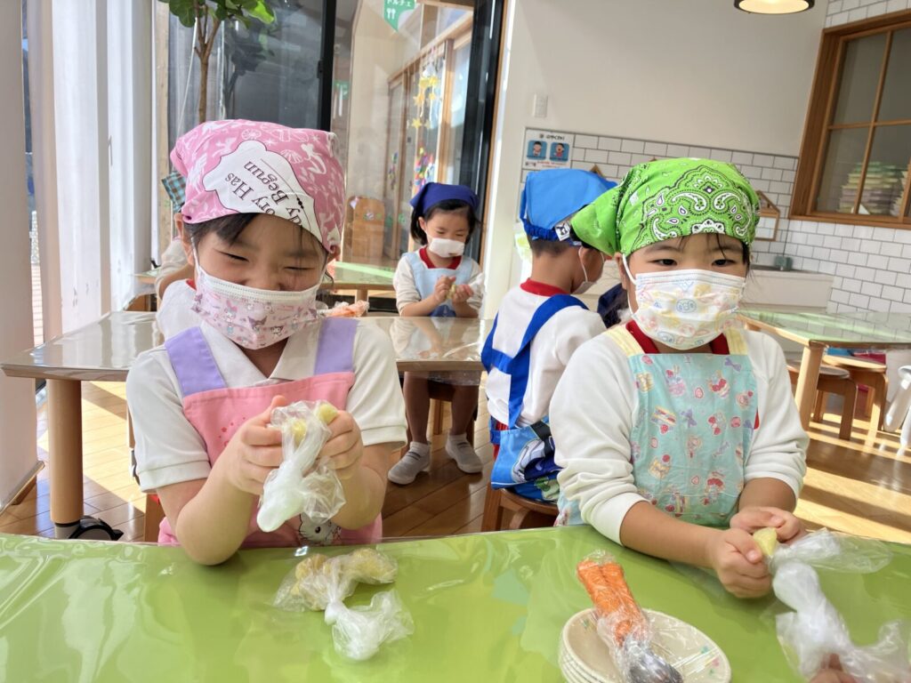 園庭の木々が赤やオレンジへと姿を変え、ますます秋が深まってきました!そんな自然との触れ合いの中で大きさ比べをしたり、落ち葉を活かして表現遊びをしたり、友だちと一緒に楽しんでいた子どもたちです!他にも楽しいことはいっぱい!先月お休みが多くてできなかったハロウィンをリベンジ🎃3園の交流会『HMO Smile Ring😊』などドキドキワクワクがいっぱい💕普段と違う環境の中でも自分をアピールし、人と関わる楽しさを感じていました!そんな素敵な表情ぜひご覧ください!
