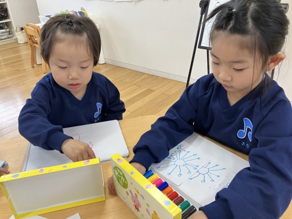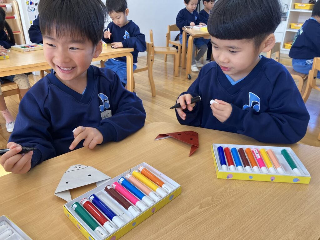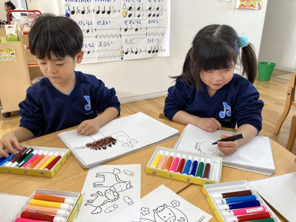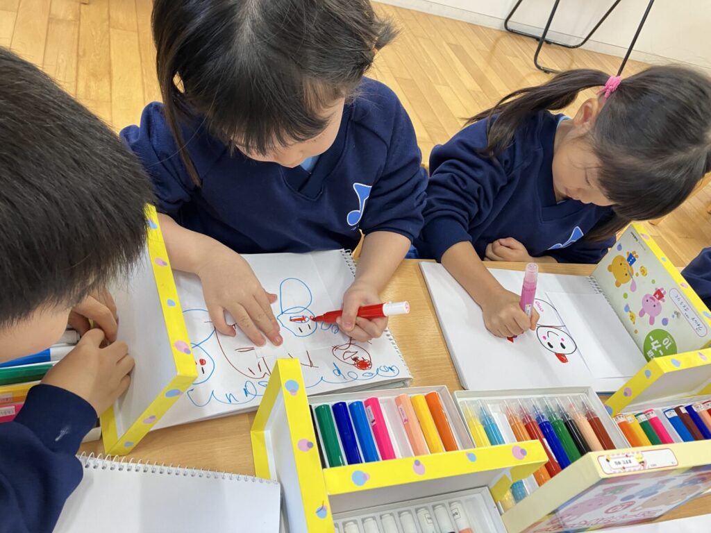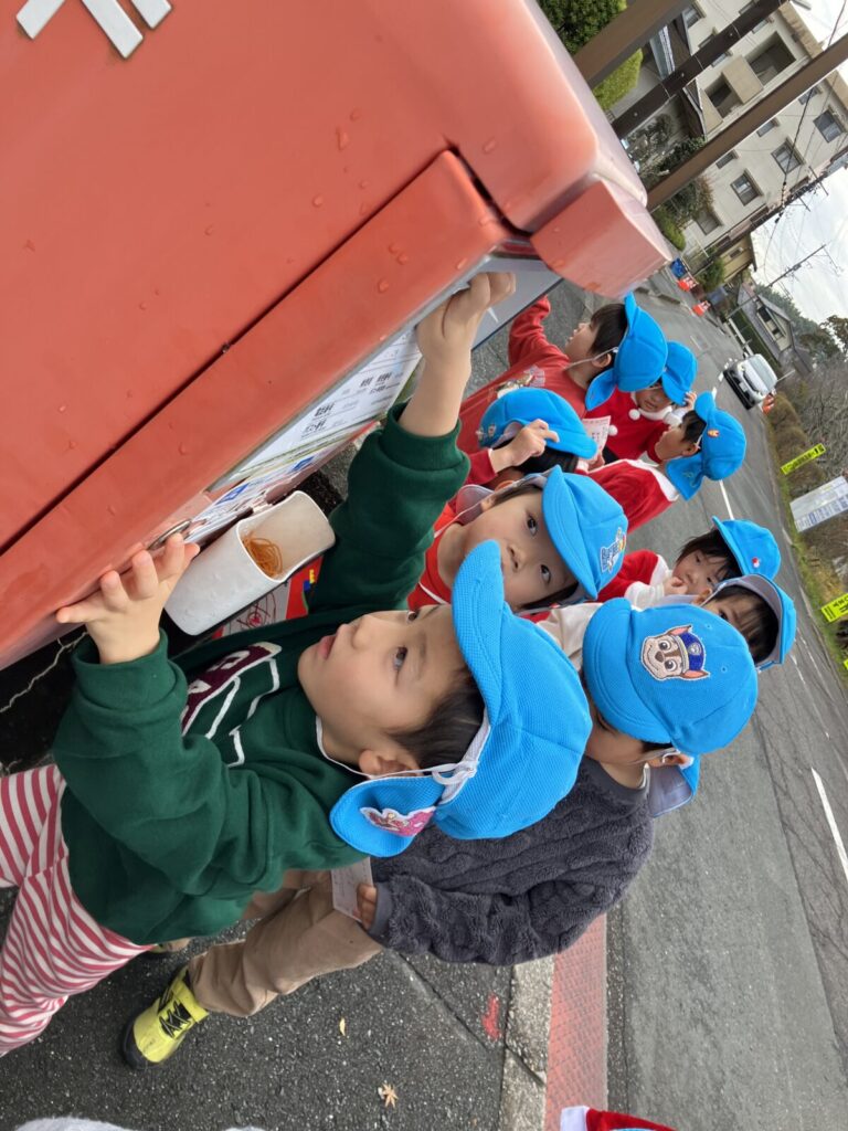 初めての年賀状作りでは、どんな絵を描こうかな?「ゆきだるま」「馬」などと考えながら楽しそうに描いていました。ポストに入れてお正月に届くのを楽しみにしているフォルテさんです。