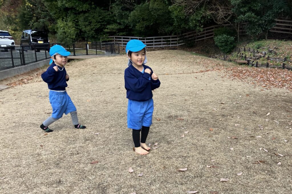 寒さに負けずに園庭で走り回って元気いっぱいの子どもたちです。