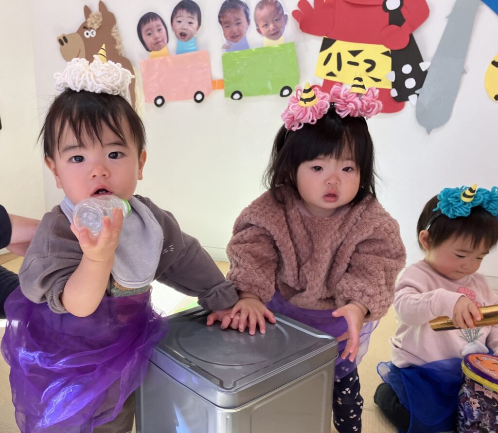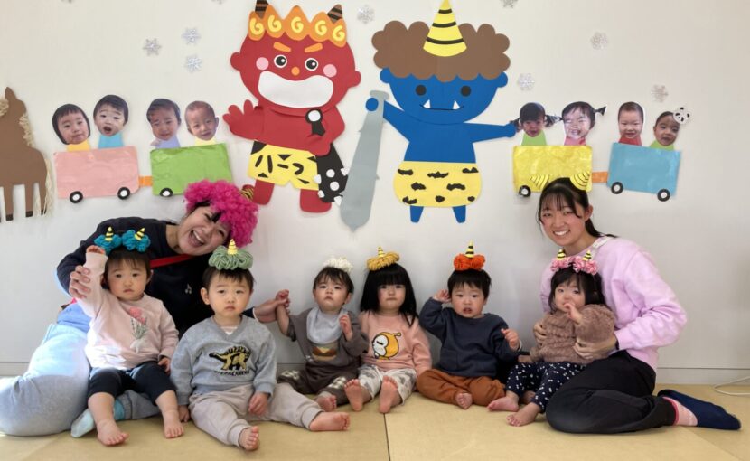 寒い日が続いた2月でしたが、毎日お部屋や園庭で元気い〜っぱい遊んだハープさん!⛄ お部屋には赤鬼さんと青鬼さんの壁面が登場!👹 節分の日には鬼に向かって豆まきをしたり、「鬼のパンツ」「豆まき」の歌に合わせてマラカスをフリフリ、太鼓をドンドンしたりして初めての節分を楽しむことができたね♡ また、寒い日には氷を作り、大きな氷をみんなでちょんちょん触って楽しみました❄️
