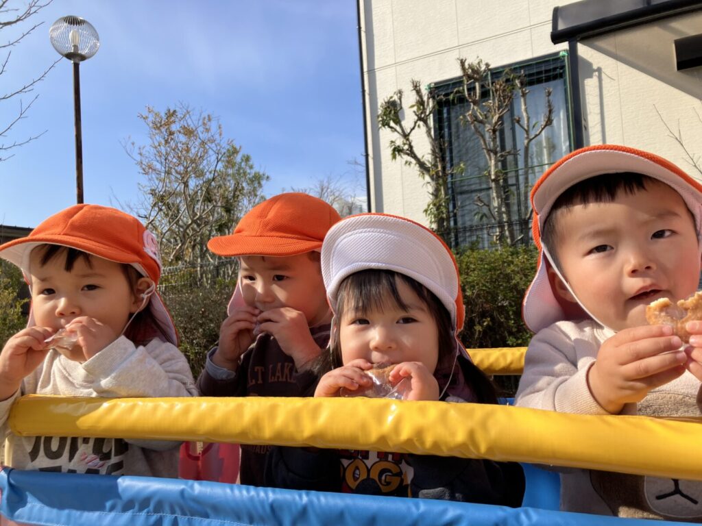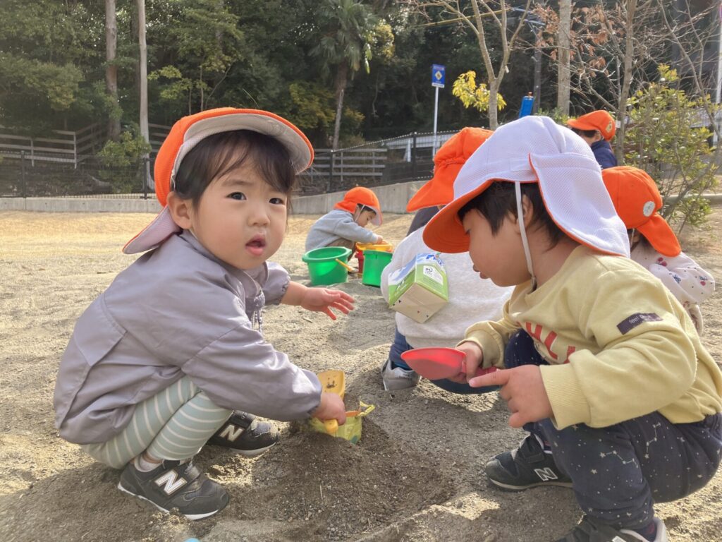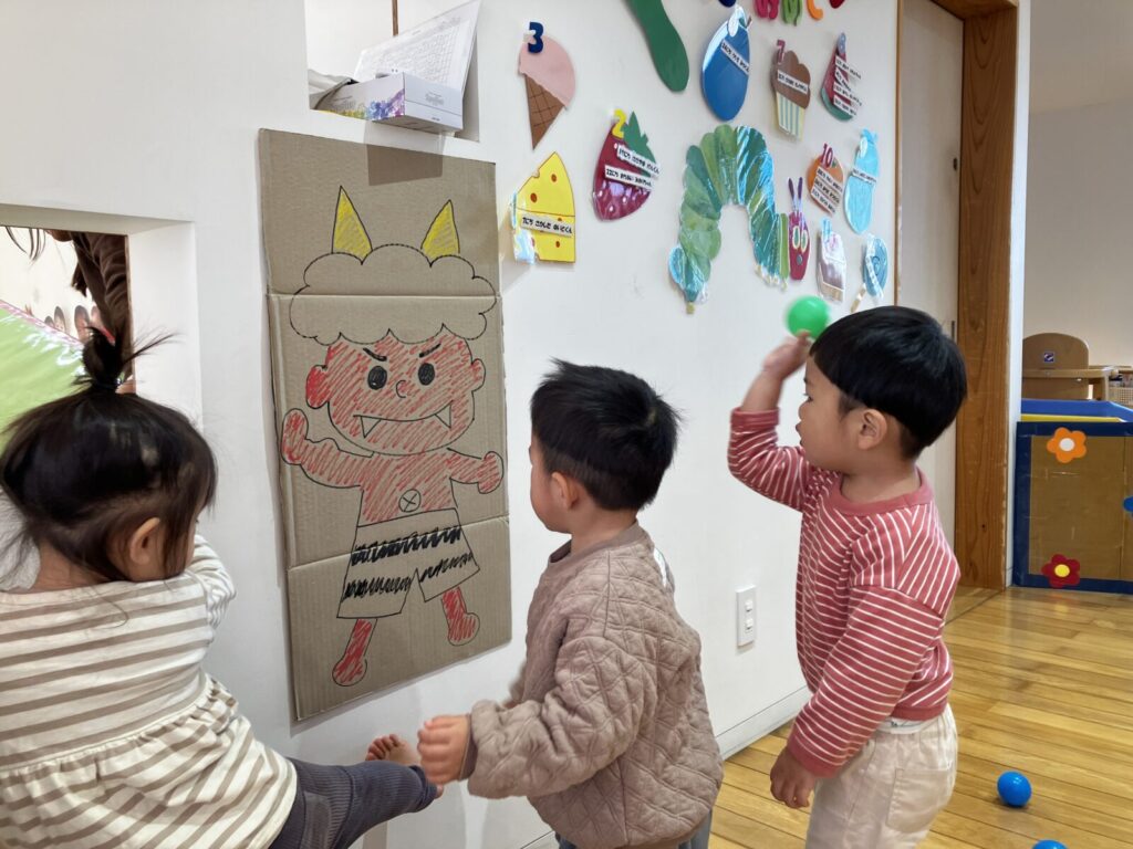 少しずつ寒さが和らいで暖かい日が増えてきた2月。そんな2月の行事といえば節分ですね👹大好きな鬼さんがやってくると、うれしそうに「おにはそと~!!」と豆まきをしたり、「おにのパンツ」を歌ったりして楽しんでいました♪お外に出ると、お友だちと一緒に追いかけっこ♬お砂場ではおままごとをして元気いっぱい遊んでいたピアノさんです💗