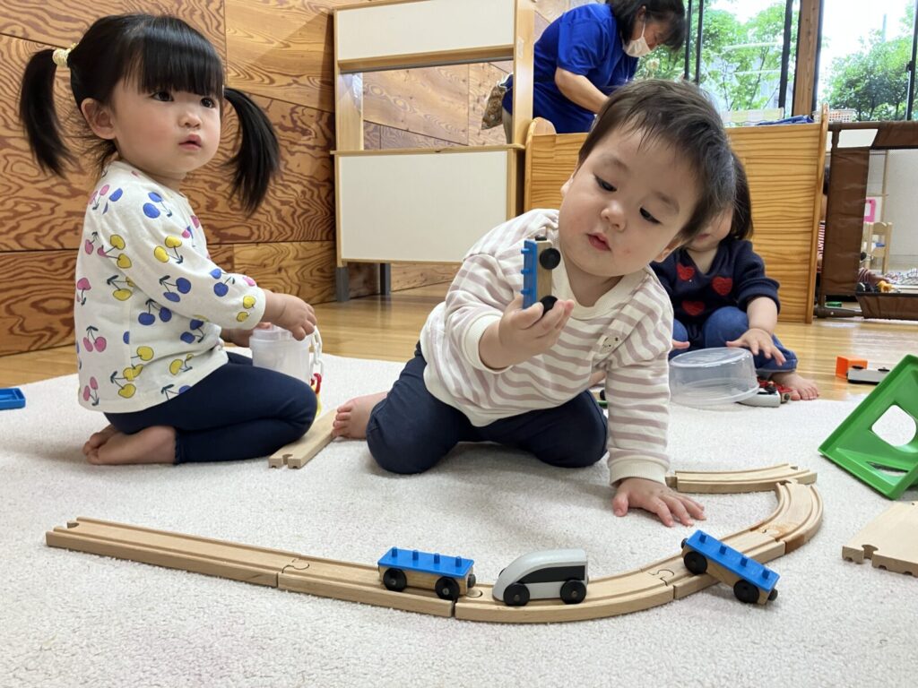 慣らし保育ではパパやママと離れて泣いてしまうこともありましたが、先生に抱っこしてもらって泣き止んだり、少しずつ好きなおもちゃに手を伸ばしたり、時折見せてくれる笑顔が嬉しかったです💖泣き顔が笑顔になったらみんなで一緒に遊ぼうね~!☺